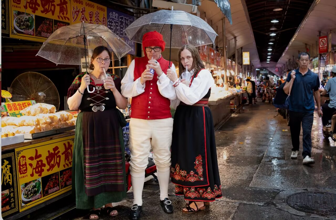 The Fabric of Belonging unfolds precisely within this context—an artistic exploration that takes fabric as its language, the body as its medium, and belonging as its central inquiry. Since 2012, three Nordic artists—Nina Maria Kleivan (Norway), Hjördis Haack (Faroe Islands, Denmark), and Bent Hedeby Sørensen (Denmark)—have engaged in a decade-long collaboration, drawing traditional costumes out of the glass cases of history and returning them to the public spaces of contemporary life. No longer confined to ceremonial symbols, these garments become active texts within performances, videos, and installations—humorous yet profound questions posed to us all: Who am I? Who are “we”?